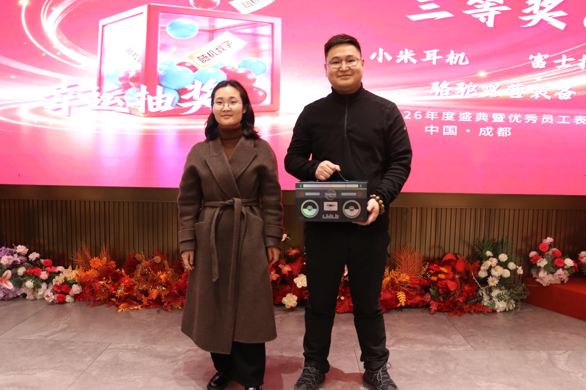 三等奖(3名):小米耳机、富士拍立得相机、骆驼露营装备套装。三位幸运同事抱得实用好物,脸上笑开了花。