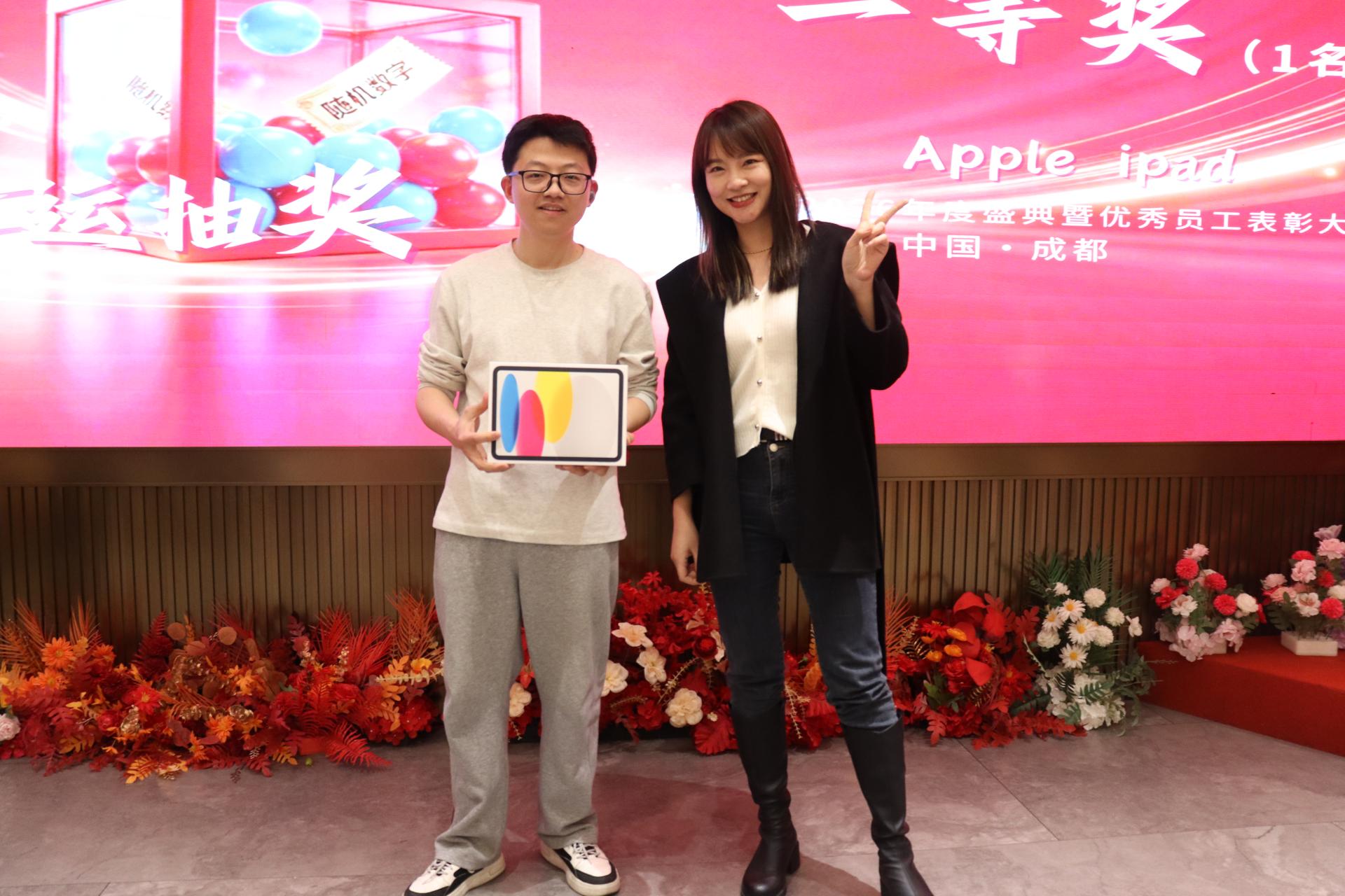 一等奖(1名):苹果平板电脑。当最终大奖揭晓时,全场欢呼声达到顶点。大家纷纷鼓掌恭喜获奖同事