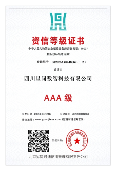 四川星问数智科技有限公司是一家专注于人工智能技术研发和行业应用的高新技术企业。公司以"算联协同、软硬融合"为核心,提供从算法研发、硬件设计到系统集成的场景化定制解决方案,现已通过ISO三大体系认证、AAA级信用认证,并拥有多项自主知识产权。